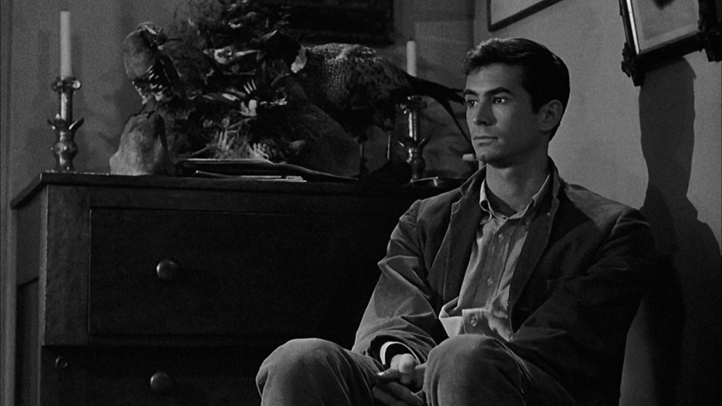 Finally, Psycho’s most iconic scene: the shower. Hitchcock plays with light and contrast in the film’s most climactic scene to amplify the horror: Mother’s silhouette through the translucent curtain, the blood splattering, Marion’s body on the bathroom tile. Afterwards, the camera slowly zooms out in a spinning motion from Marion’s eye. She is dead, and the camera chooses another subject to follow for the rest of the film: Norman.